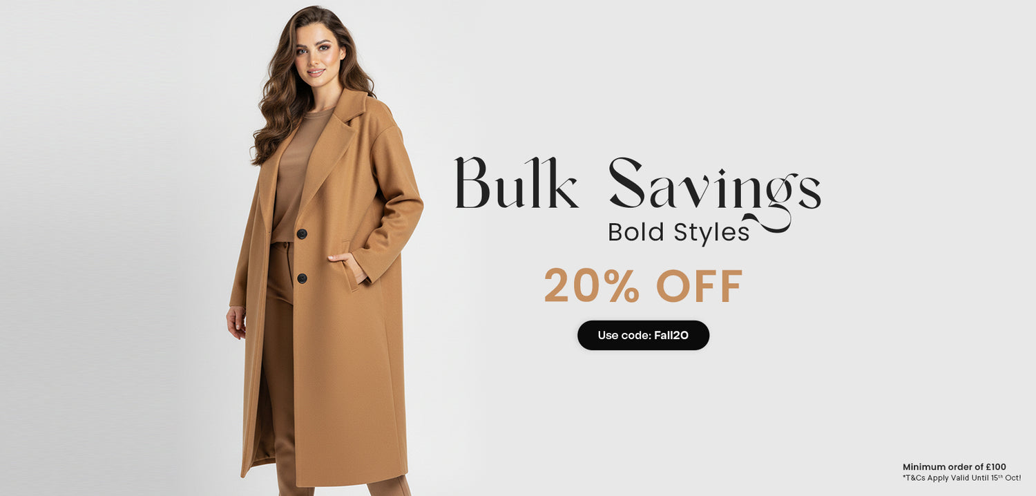 The ready-to-wear wholesale clothing for boutique owners UK at Europa Fashions delivers modern and dynamic designs at exclusive sales & discounts of up to 60% off. If you explore our site, you’ll find amazing discounts on every next stunning piece for you to stock in your store.