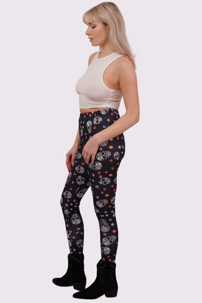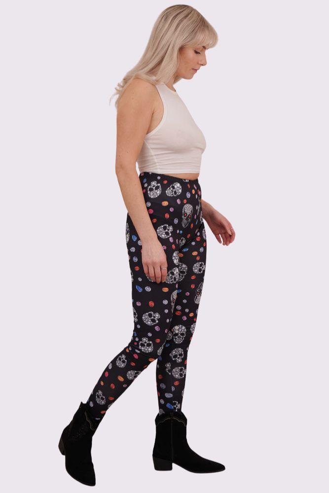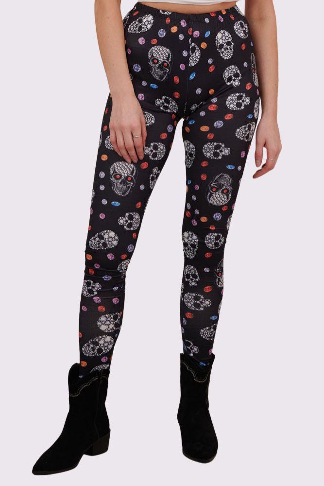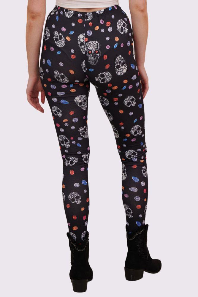 Bejeweled Skull And Diamonds Print Halloween Leggings