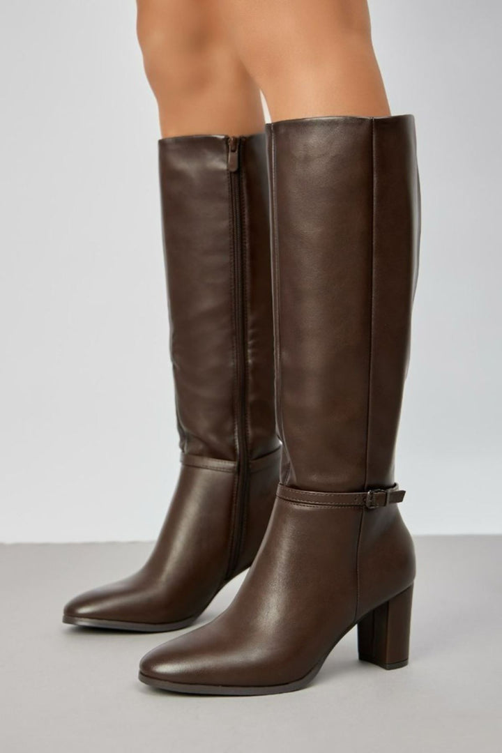 Buckle Detail Zip Up Knee High Heeled Shoes