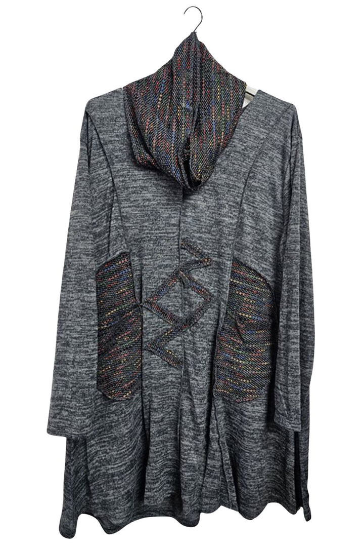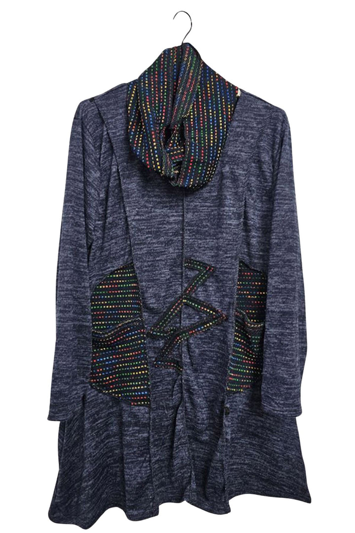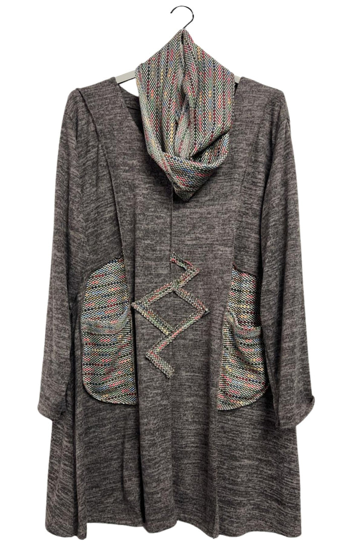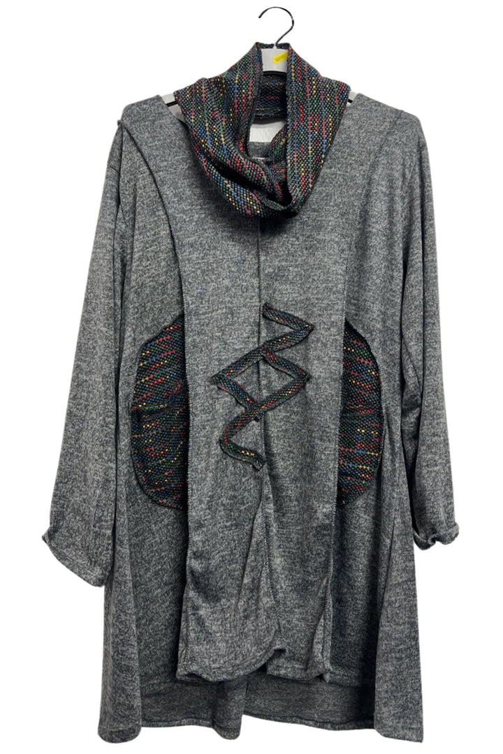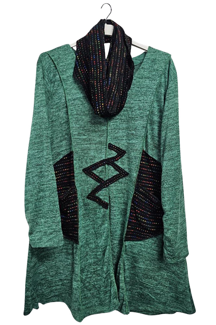 Elevate your casual autumn and winter wardrobe with this stunning Italian viscose top. Featuring a vibrant coloured zigzag pattern, this top brings playful energy to your look. The round neck and long sleeves provide warmth and comfort during cooler seasons, while the loose fit ensures plus-size figures feel relaxed and stylish. Front pockets add both practicality and charm, making it perfect for everyday wear. This top comes with a matching scarf, creating a coordinated, effortless style. Made for comfort and versatility, this piece is ideal for layering, bringing together style and functionality for the modern, casual woman.