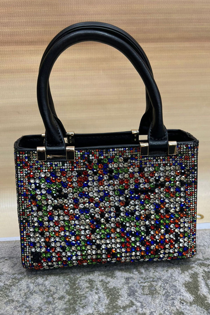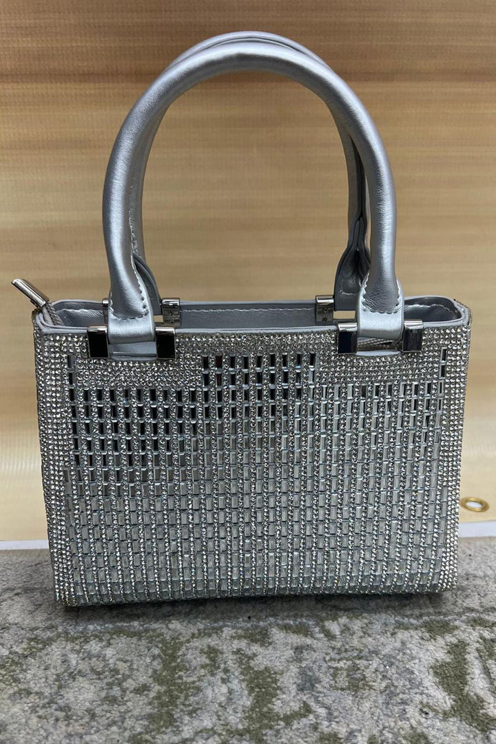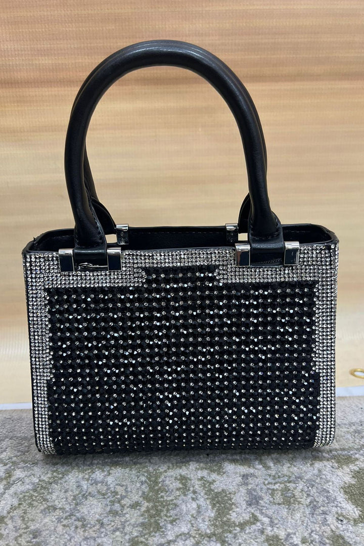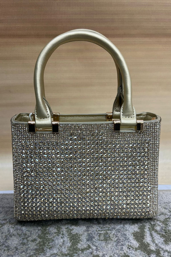 Dazzle in sophistication with this Women’s Crystal Embellished Handbag, designed to elevate your evening look with a touch of glamour. Featuring a stunning all-over rhinestone design that catches the light from every angle, this bag is a showstopper for parties, weddings, and formal events. The structured mini tote silhouette exudes elegance, complemented by a metallic finish and gold-tone hardware. Crafted from premium faux leather, it includes sturdy top handles and a detachable shoulder strap for versatile wear. Compact yet practical, it holds essentials like your phone, keys, and lipstick while adding undeniable sparkle to your outfit.