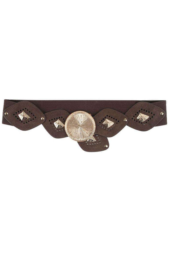 Add a bold and stylish touch to your outfit with this Women’s Western Style Elastic Waist Belt. Crafted from soft faux suede in a rich brown tone, it features intricate perforated detailing and eye-catching metallic studs for a rustic yet elegant finish. The statement round metal buckle at the center enhances the design, making it a perfect accessory to cinch dresses, blouses, or coats. The elastic back ensures a comfortable and flexible fit, offering both fashion and function. Whether you’re styling a boho-chic dress or elevating a classic outfit, this belt brings Western-inspired flair to any look with effortless sophistication.