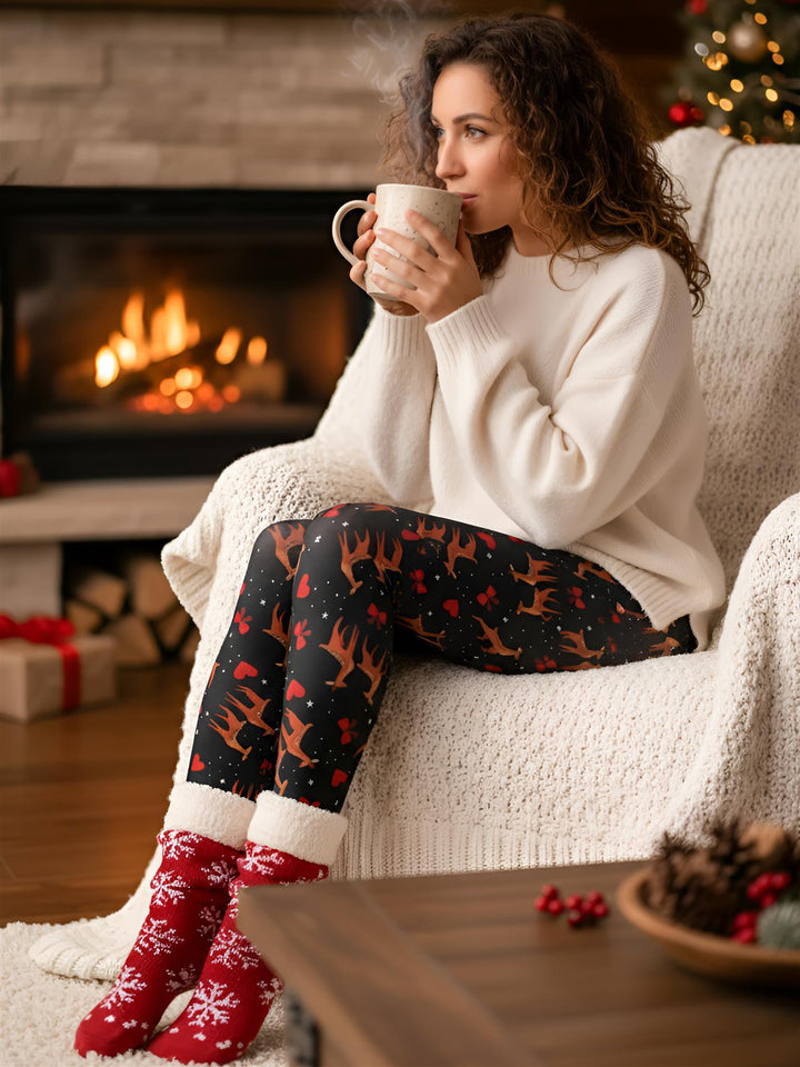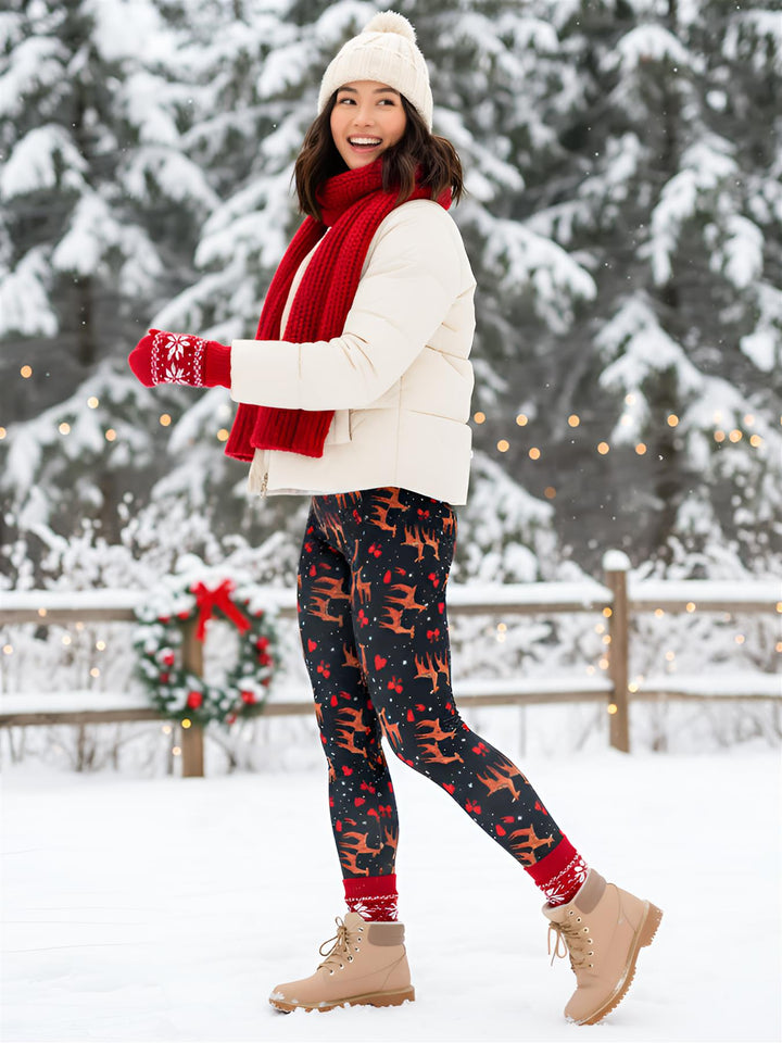 These trendy leggings are the perfect piece for a xmas outfit. Whatever the occasion may it be exercise relaxing at home or even dressed up with heels for a day out. The elasticated material creates a flattering silhouette. These leggings are perfect for versatility a true wardrobe staple. How will you style them?