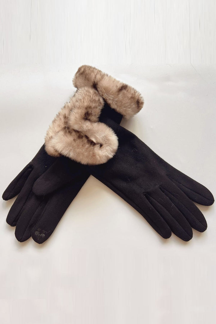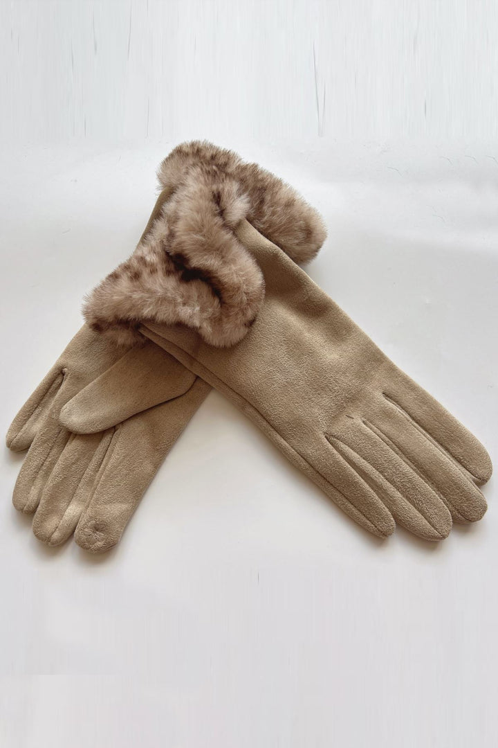 Faux Fur Cuff Suede Gloves