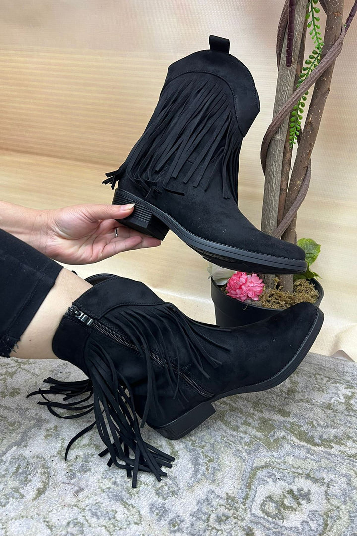 Fringe Side Zip Ankle Shoes
