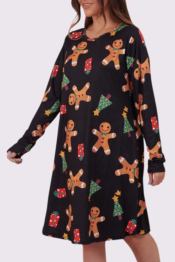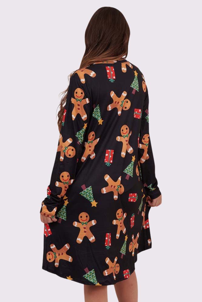 Gingerbread Gift Tree Print Xmas Swing Dress