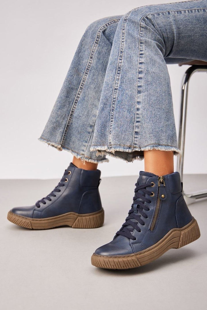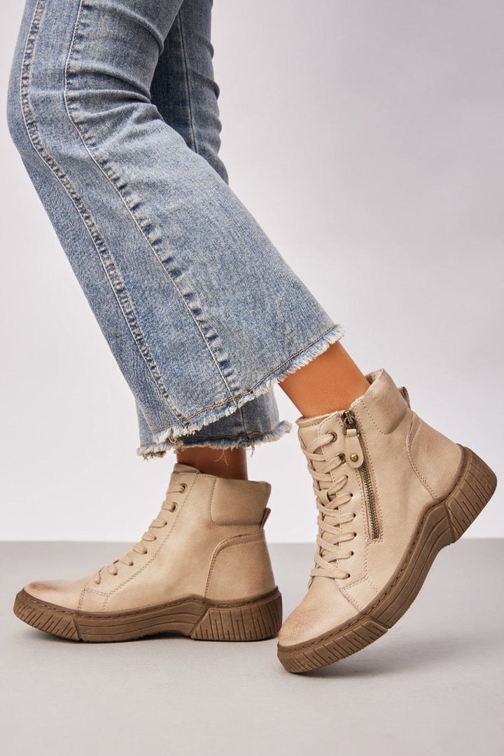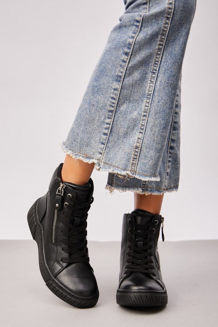 Grip Sole Side Zip Lace Up Shoes