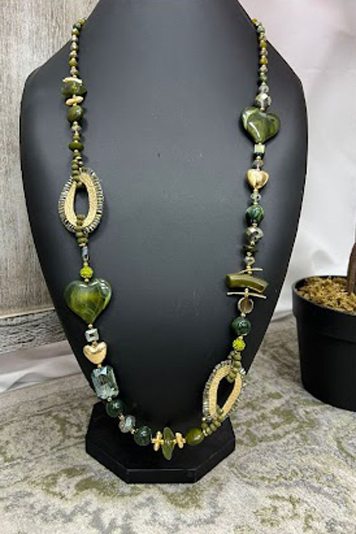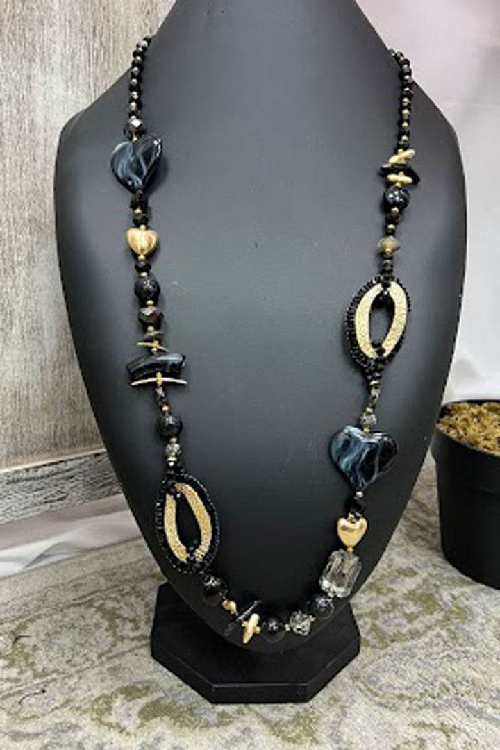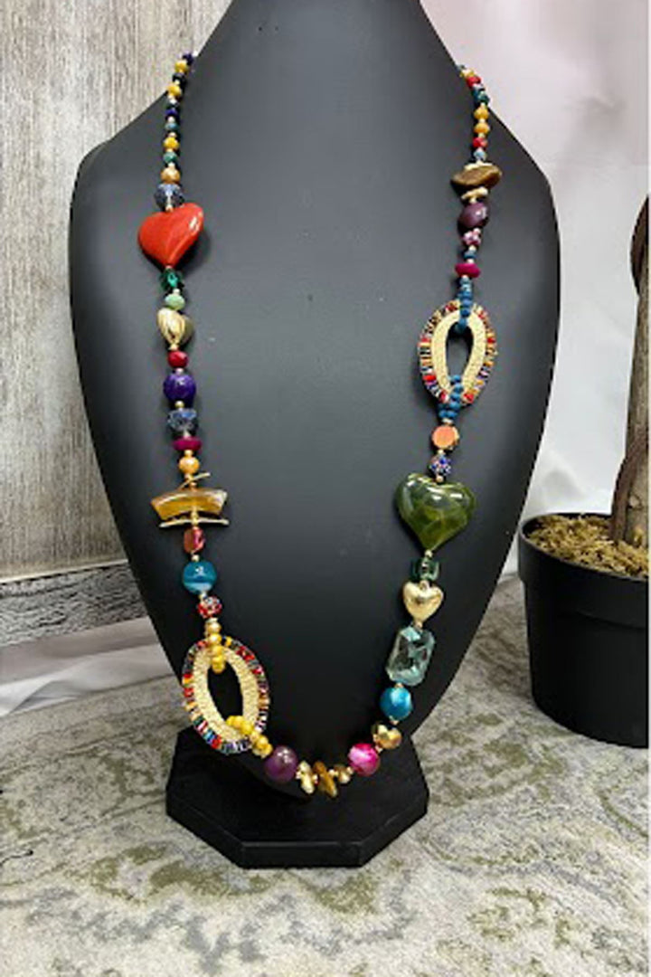 Add a touch of boho-chic elegance to your outfit with this Handcrafted Long Beaded Necklace. Beautifully designed with a mix of earthy brown, amber, and gold-toned beads, this statement piece features a blend of heart-shaped charms and geometric accents that make it stand out effortlessly. The combination of natural tones and artistic design makes it perfect for pairing with casual or formal outfits. Whether worn over a simple blouse, tunic, or dress, this necklace adds sophistication and creativity to your look. Ideal for gifting or accessorizing year-round, it’s a must-have for women who love unique, handcrafted jewelry.
