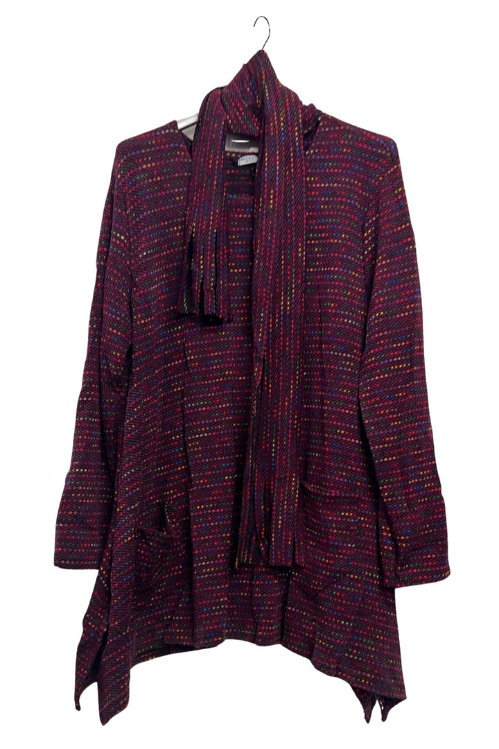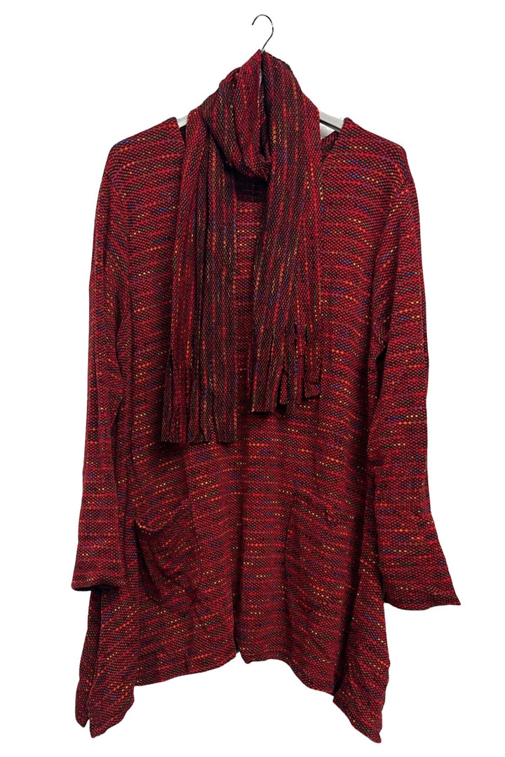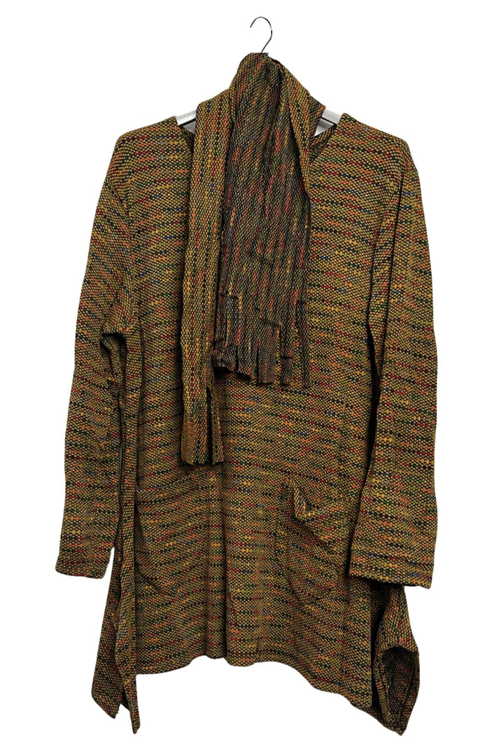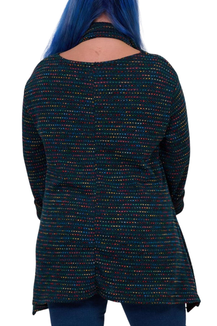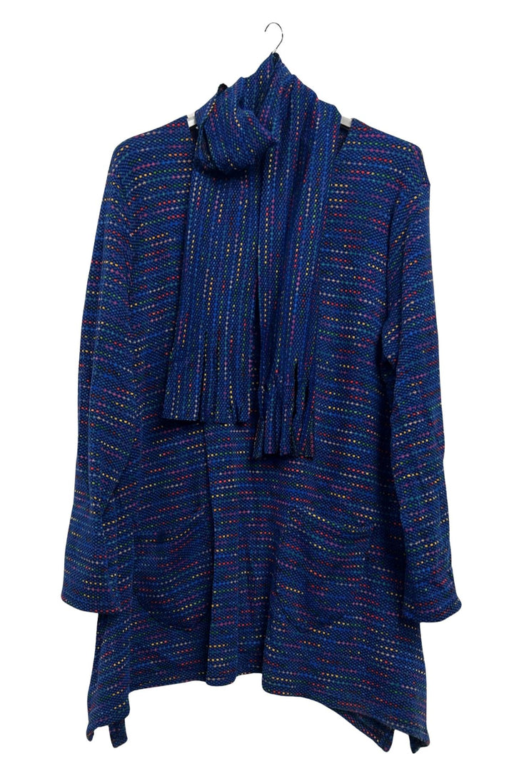 Embrace Italian elegance with this charming jumper for women. Crafted from premium viscose, it features a warm multi-stripe pattern, perfect for autumn-winter. The round neck, long sleeves, and loose fit ensure comfort, while a matching scarf complements the casual style. Plus size, with a pocket detail, this jumper combines fashion and function effortlessly.