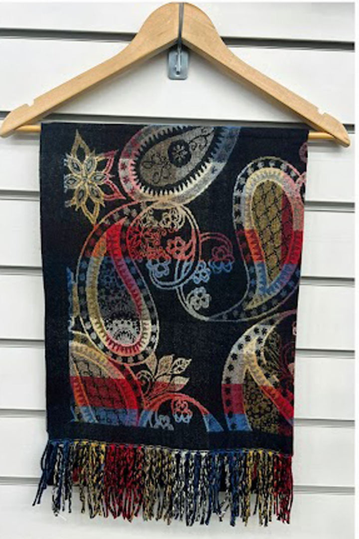 Elevate your winter style with this Women’s Multicolor Paisley Print Scarf, a perfect blend of warmth and elegance. Crafted from ultra-soft fabric, this scarf features a stunning paisley pattern in rich tones of red, gold, blue, and black—ideal for adding a pop of color to your cold-weather outfits. The lightweight yet cozy texture makes it suitable for both casual and formal looks, while the fringed tassel edges lend a touch of bohemian charm. Whether draped over your shoulders or wrapped around your neck, this versatile scarf enhances your winter wardrobe with timeless appeal and comfort. Perfect for everyday wear, gifting, or travel.