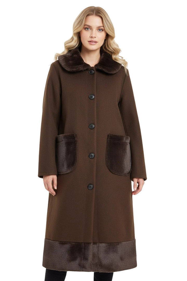 Wrap yourself in effortless sophistication with this Italian-inspired longline winter coat for women. Crafted from a soft wool-blend fabric, it’s designed for ultimate warmth and everyday luxury. The wide faux fur collar adds an elegant touch, while black button fastening at the front gives it a classic and refined appeal. Two front patch pockets trimmed with faux fur blend function with fashion, offering both style and comfort for chilly days. The straight hemline with fur trim completes the coat’s graceful silhouette, ensuring you look polished wherever you go. Perfect for autumn and winter layering, this polyester coat offers a relaxed, plus-size fit that allows easy movement and cozy comfort. Whether you’re heading out for a casual stroll, an evening outing, or winter travel, this loose-fit coat keeps you snug and stylish all season long — your perfect blend of warmth and timeless elegance.