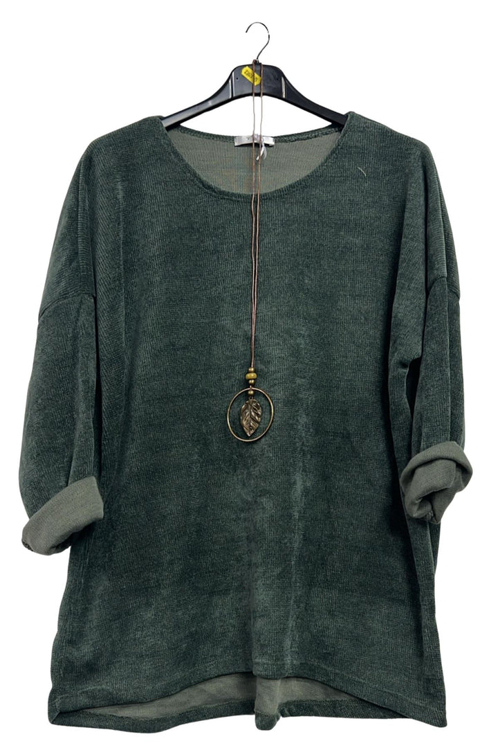 Elevate your autumn-winter style with our Italian-inspired Viscose knit top for women. This plain, long-sleeve piece features a round neck and a flattering loose fit, perfect for a casual day out. Plus-size options available, and it comes with a chic necklace to complete your look.