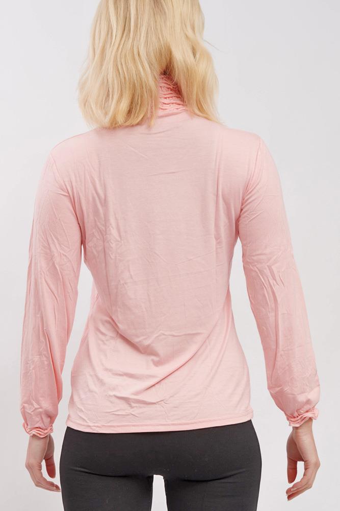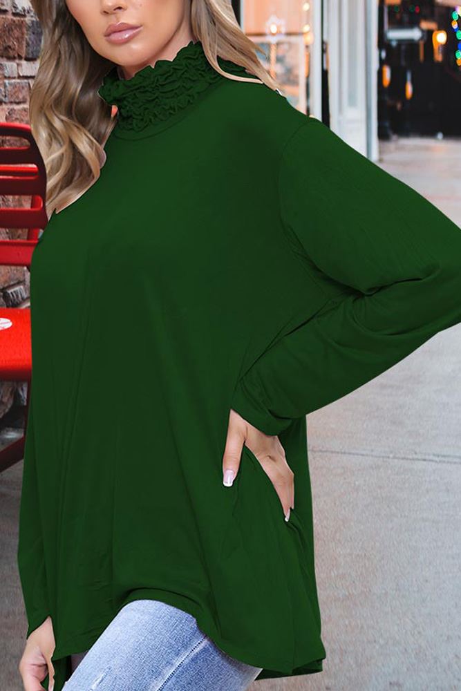 Plain Ruched Frill Roll Neck Tunic Viscose Top