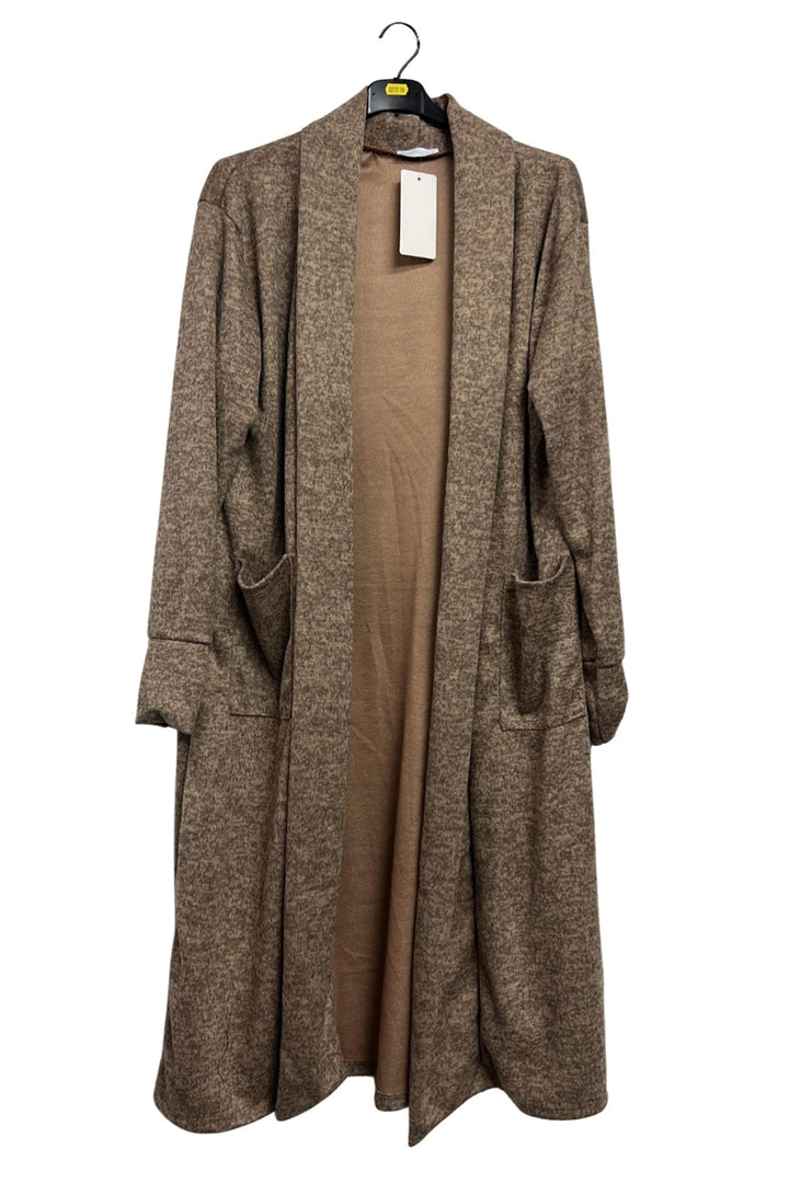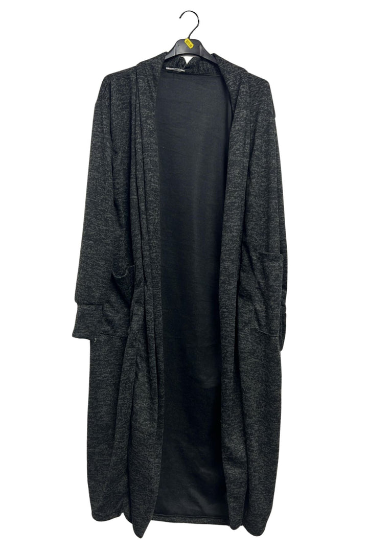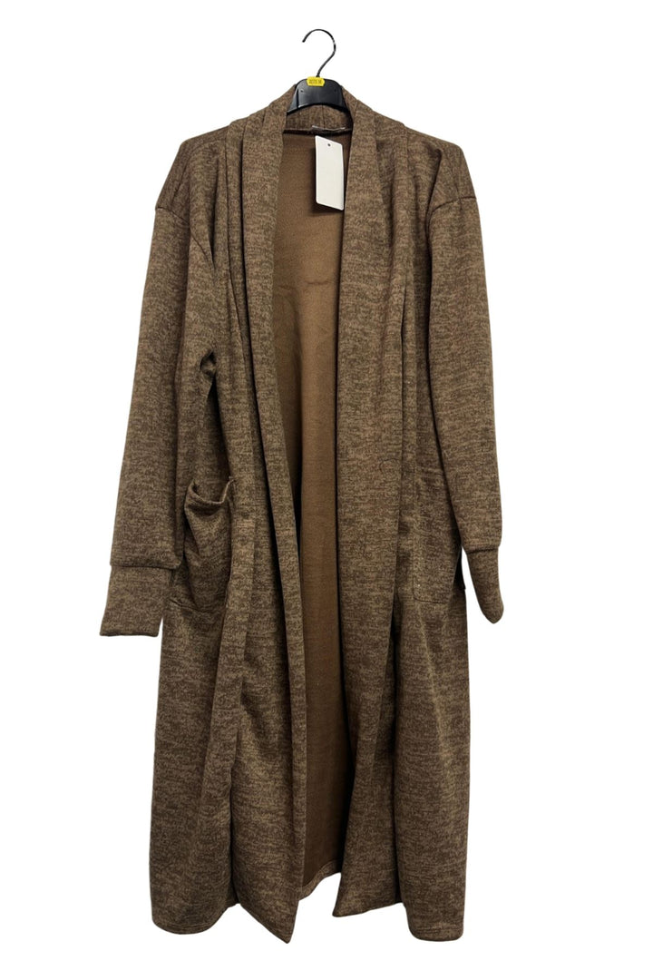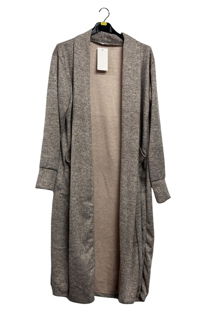 Bring effortless elegance to everyday dressing with this Italian viscose longline duster cardigan. Crafted from a lightweight knit with a soft marl effect, it combines cosy warmth and breathable comfort—ideal for spring, autumn, or mild winter days. The shawl collar style drapes beautifully along the open front, while dropped shoulders and long sleeves create a relaxed, slouchy silhouette. Two practical side pockets add function and casual charm. Designed in a plain solid colour with a subtle textured finish, it pairs easily with jeans, dresses, or leggings for versatile layering. The straight hemline elongates the figure, making it perfect for plus-size, loose-fit comfort. Whether you’re running errands, lounging at home, or travelling, this open-front cardigan delivers the perfect balance of chic and cosy. Slip it on over a tee or knit top to instantly elevate any outfit with timeless Italian-inspired style.