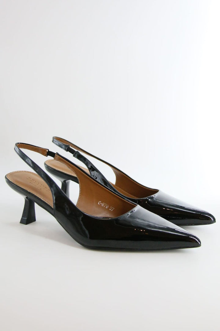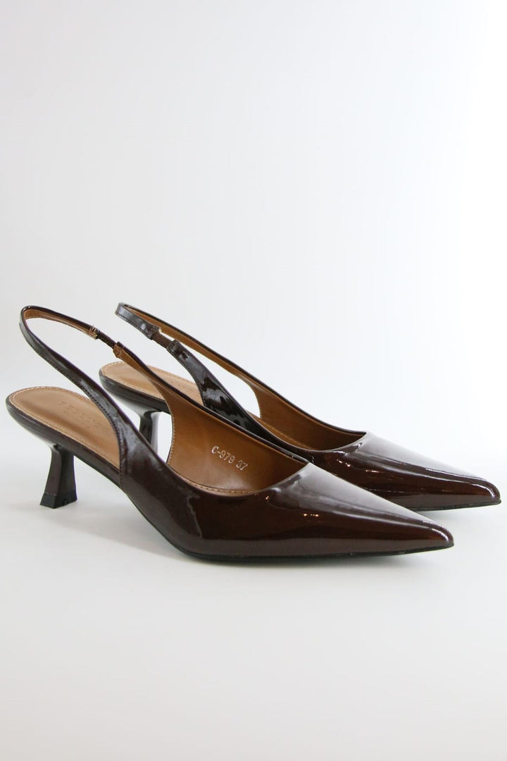 Elevate your elegance with these timeless burgundy slingback heels, perfect for both formal and semi-formal occasions. Featuring a sleek patent leather finish, pointed toe, and slim kitten heel, these shoes combine classic sophistication with modern flair. The adjustable slingback strap ensures a secure fit, while the lightly cushioned insole adds comfort for all-day wear. Whether you’re dressing for a wedding, evening event, or office setting, these heels are the ultimate versatile choice to enhance any outfit with a refined pop of color.
