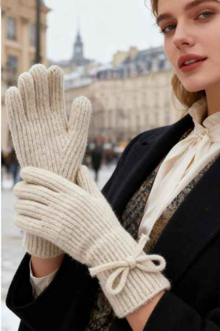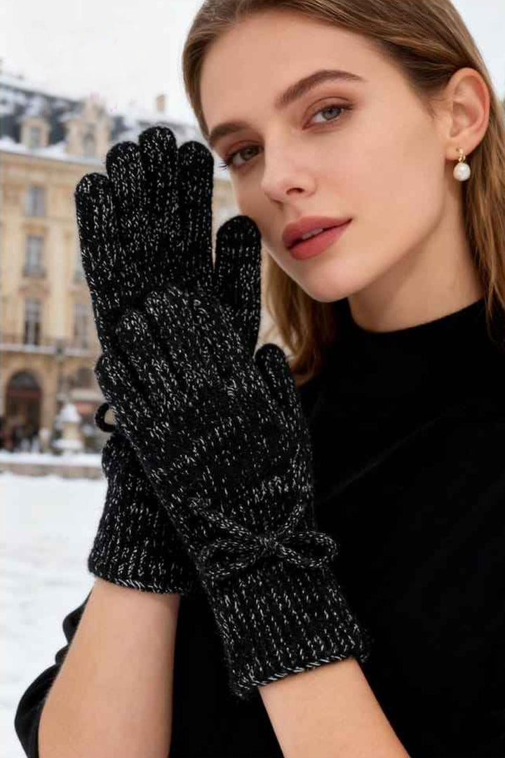 Ribbed Knit Bow Detail Gloves