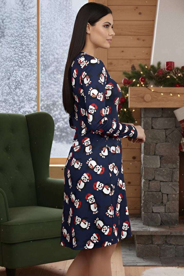 Get your ideal flared swing dress for this XMAS Featured long sleeve crew neck multiple xmas prints for casual wear in xmas evening party. It is made of very soft comfortable material.