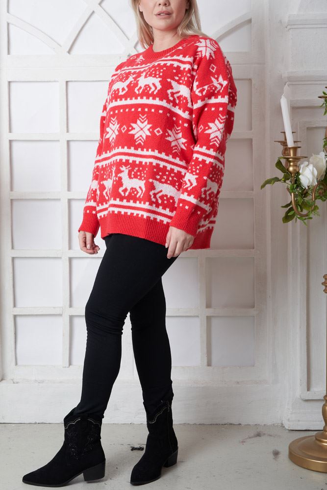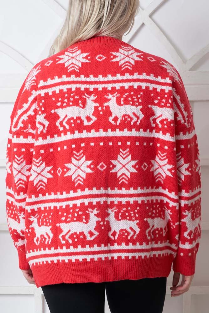 Snowflake Reindeer Pattern Xmas Ribbed Jumper