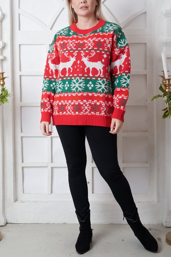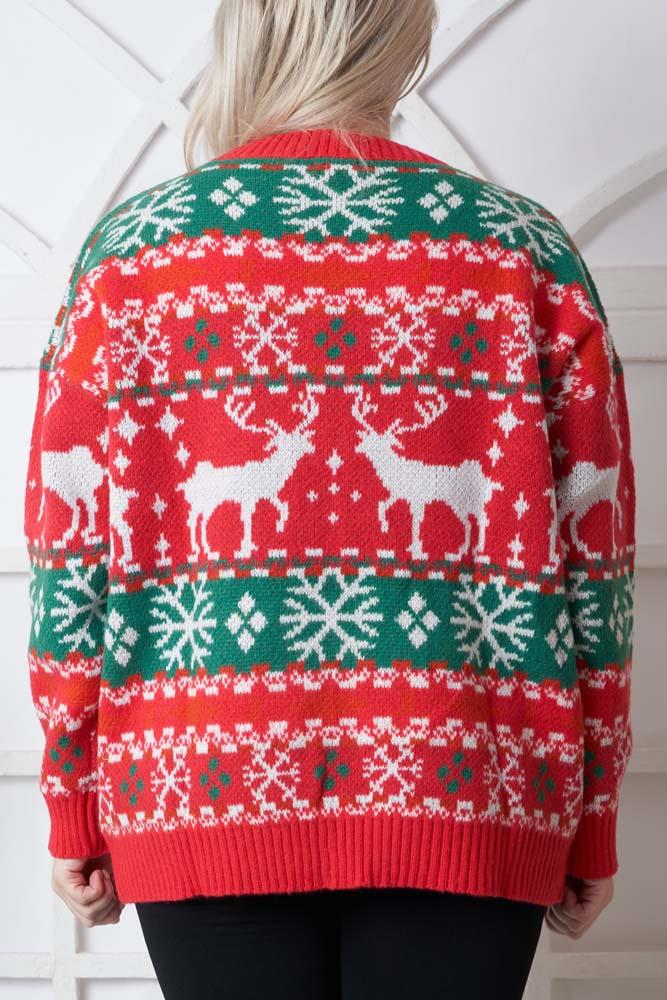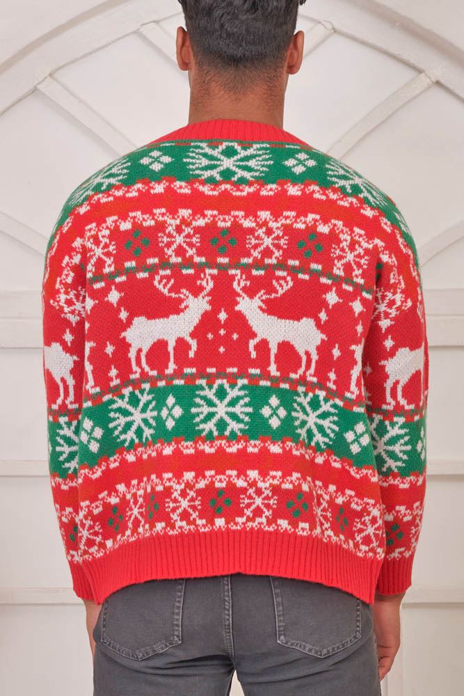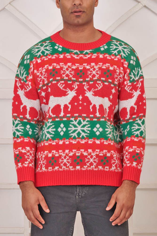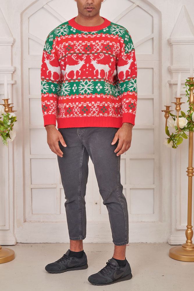 Snowflake Reindeer Pattern Xmas Ribbed Jumper