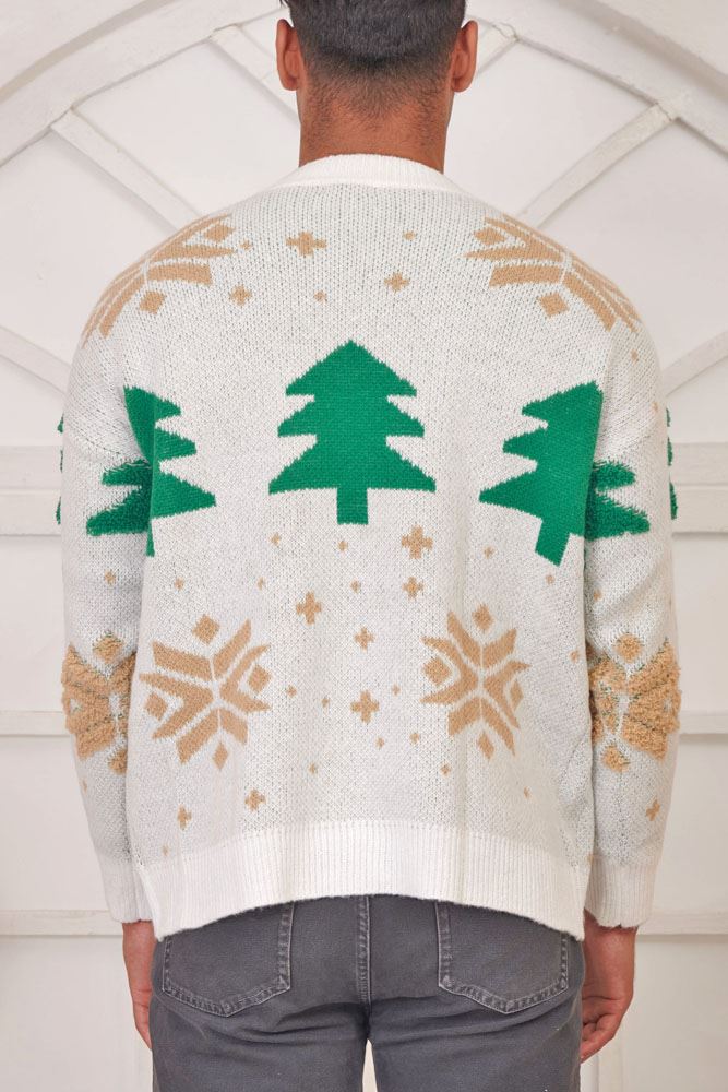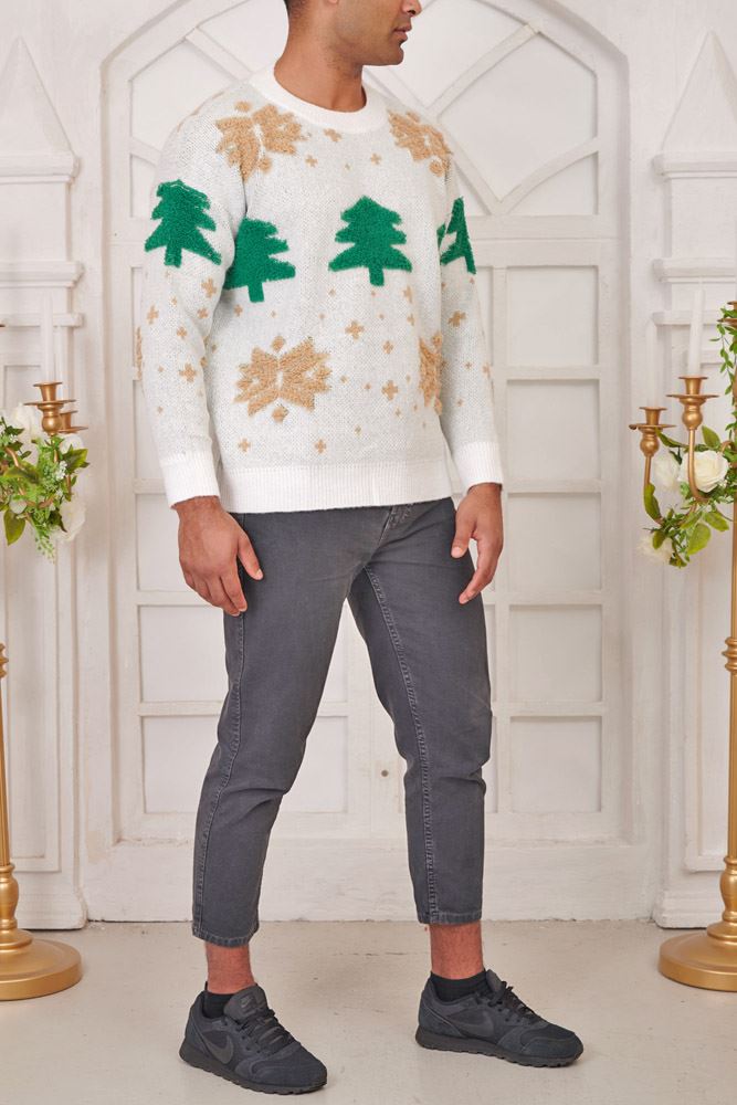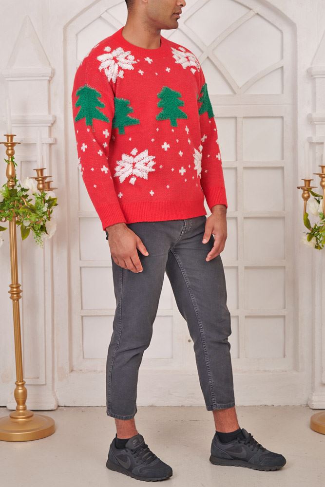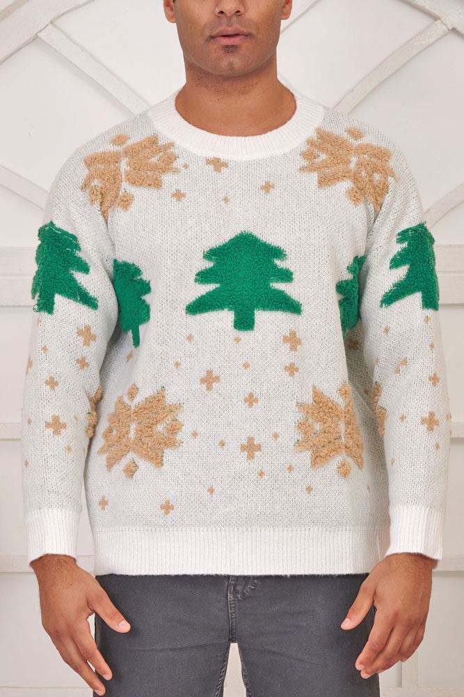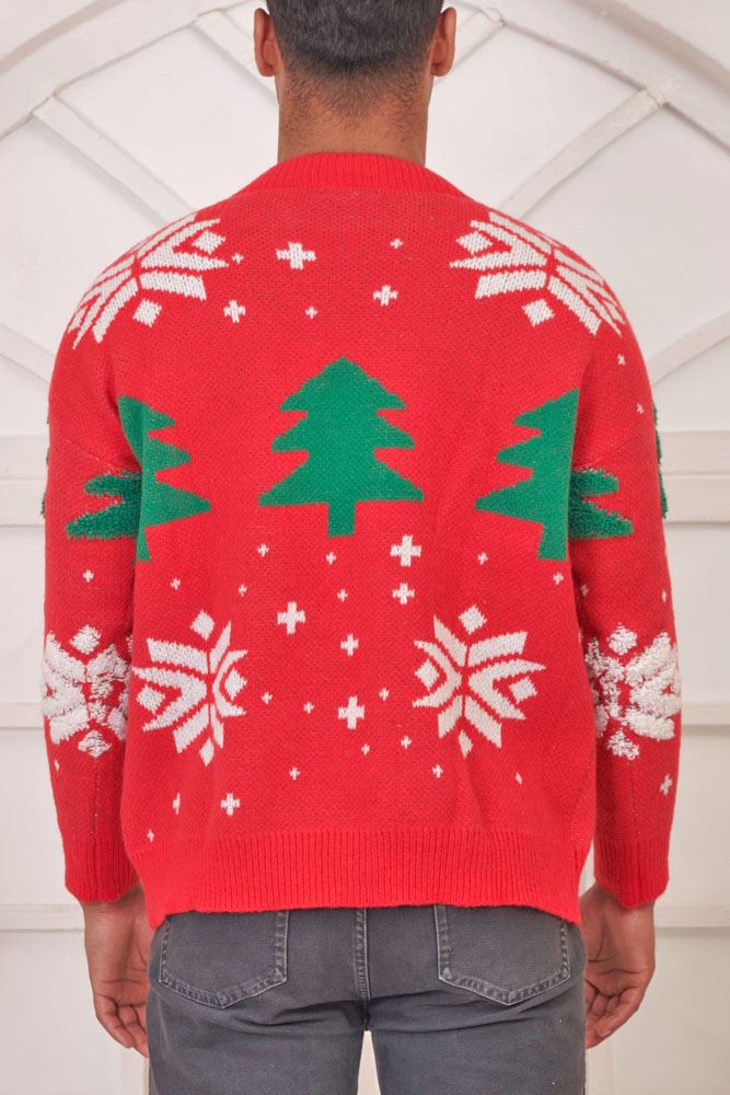 Snowflake Tree Pattern Xmas Ribbed Jumper