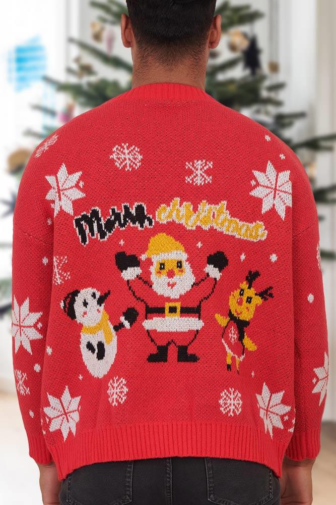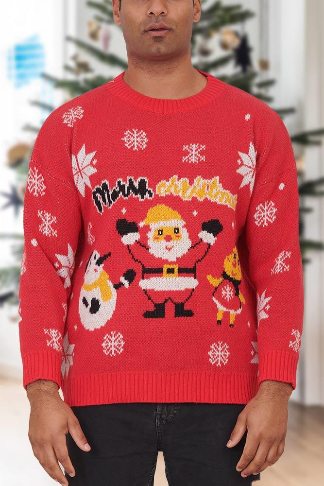 Snowmen Santa Pattern Xmas Ribbed Jumper