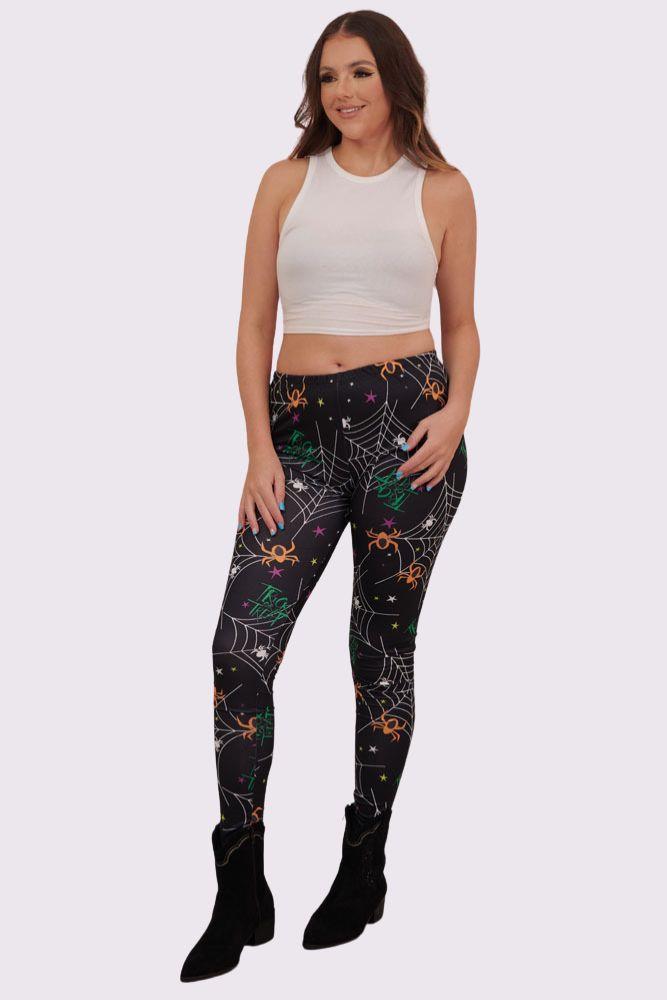These trendy leggings are the perfect piece for a halloween outfit. Whatever the occasion may it be exercise relaxing at home or even dressed up with heels for a day out. The elasticated material creates a flattering silhouette. These leggings are perfect for versatility a true wardrobe staple. How will you style them?