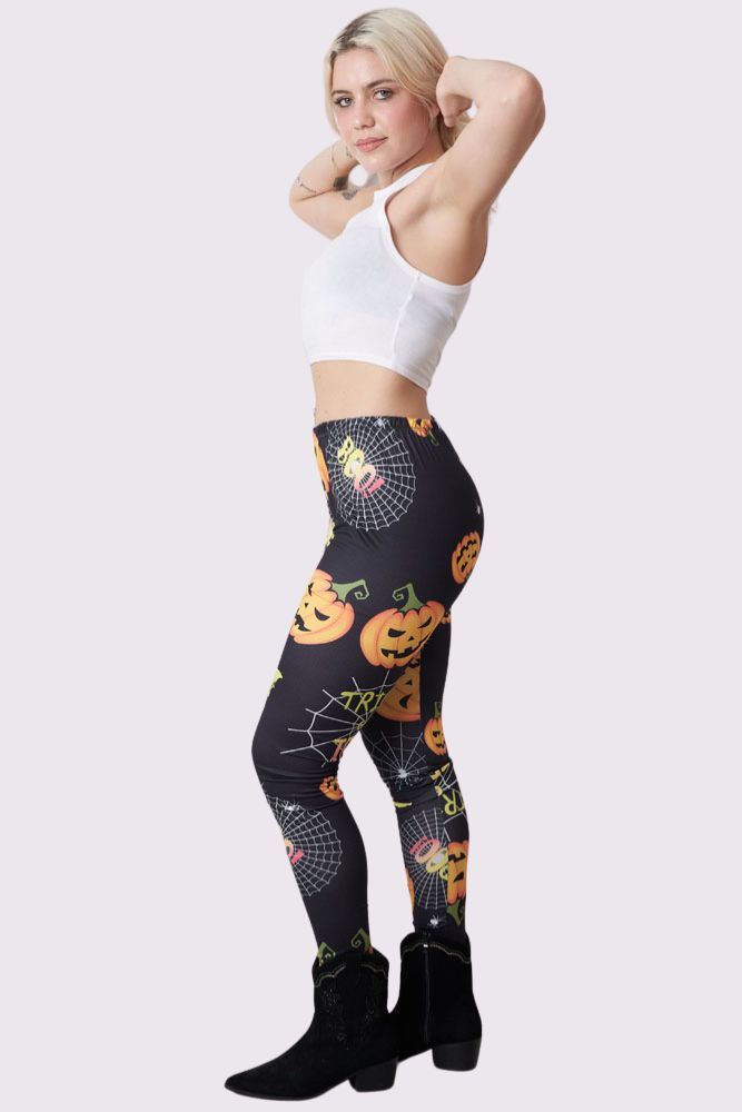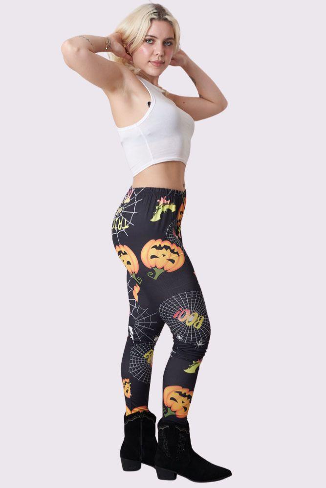 These trendy leggings are the perfect piece for a halloween outfit. Whatever the occasion may it be exercise relaxing at home or even dressed up with heels for a day out. The elasticated material creates a flattering silhouette. These leggings are perfect for versatility a true wardrobe staple. How will you style them?